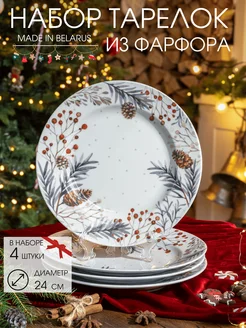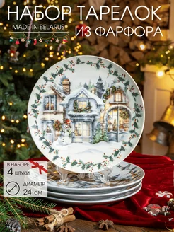 тарелка фарфоровая кухонная новогодняя, набор 4 шт
