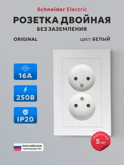 Розетка двойная Шнайдер без заземления в сборе ATLASDESIGN