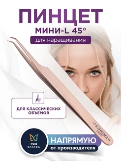Пинцет для наращивания ресниц Мини L 45° Rose gold