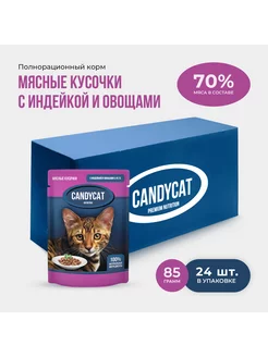 Влажный корм для кошек с индейкой и овощами, 24 шт по 85 г