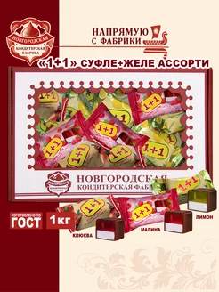 Конфеты 1+1 суфле+желе малина, лимон, клюква 1 кг