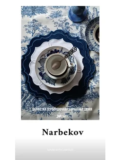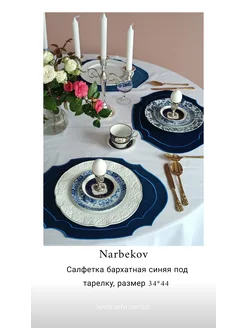 Сервировочная салфетка под тарелку синяя из бархата 34 см