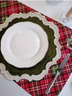 Салфетка зелёная новогодняя бархатная 34 см под тарелку