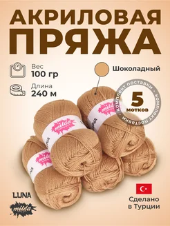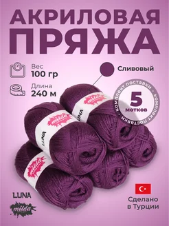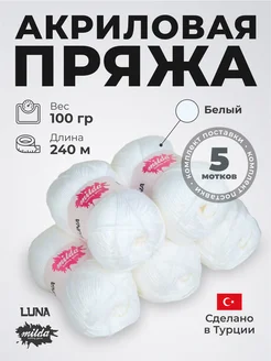 Пряжа для вязания Luna 100% акрил 5 штук