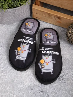 Тапочки домашние мужские закрытые с принтом Скорпион