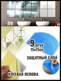 Интерьерные наклейки квадраты зеркальные, декор на стену