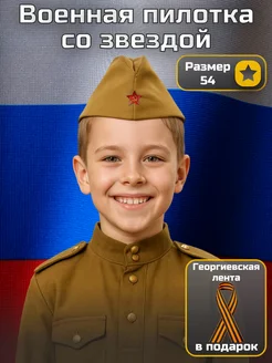 Пилотка военная детская и взрослая со звездой праздник 9 мая