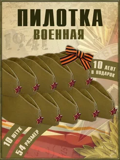 Пилотка военная детская и взрослая со звездой 10 штук