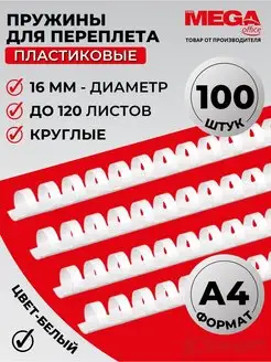 Пружины для переплета пластиковые А4 16 мм 100 шт белые