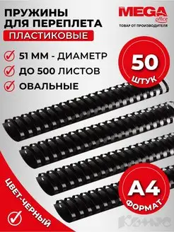 Пружины для переплета пластиковые А4 51 мм 50 штук чёрные