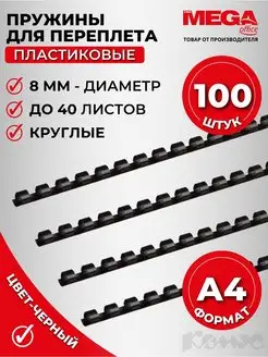 Пружины для переплета пластиковые А4 8 мм 100 шт чёрные