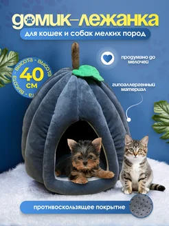 Домик лежанка для кошек и собак мелких пород мягкий с крышей