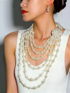 Ожерелье колье из жемчуга бусы многоярусные с серьгами
