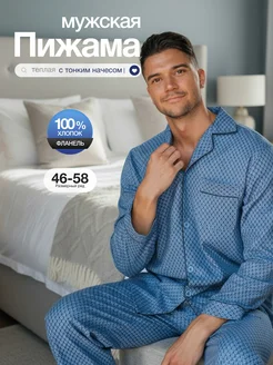 Пижама со штанами и рубашкой теплая фланелевая