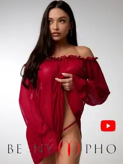 Пеньюар для сна кружевной прозрачный комплект со стрингами