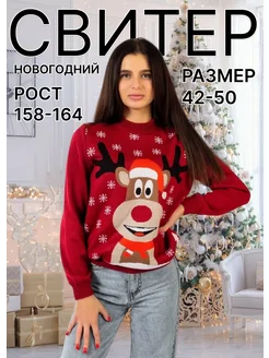 Свитер оверсайз вязаный новогодний с оленем 2025 красный