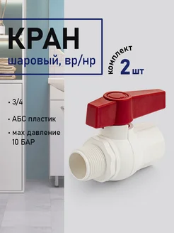 Кран шаровый 3 4" рычаг вр нр, ABS пластик 2 шт
