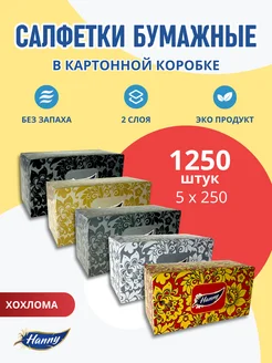 Бумажные салфетки в коробке, 5 уп по 250 шт, Хохлома