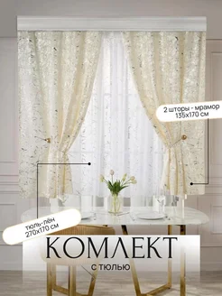 Комплект шторы с тюлью для кухни короткие