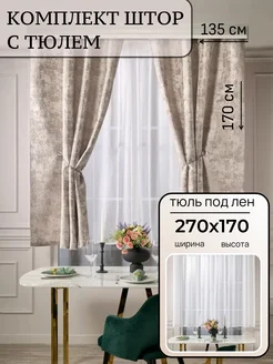 Комплект шторы с тюлем короткие для кухни