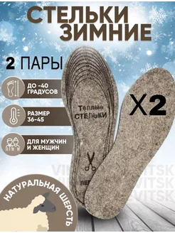 Зимние стельки для обуви натуральный войлок 2 пары