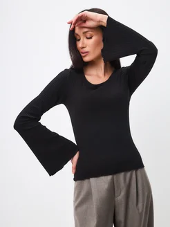 Лонгслив с вырезом облегающий