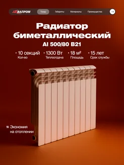 Биметаллический радиатор отопления ВI500 80B20 (10 секций)