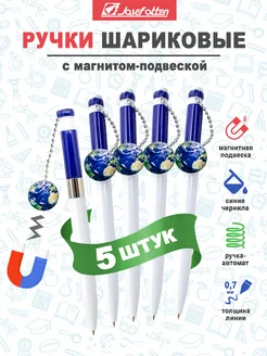 Ручка шариковая синяя с подвеской-магнитом Глобус 5 штук