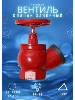 Вентиль запорный чугунный угловой 125гр КПЧ Ду65 муфта+цапка