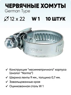 Хомут червячный металлический (размер 12х22 - 10 шт)