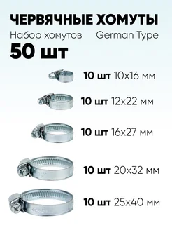 Набор червячных хомутов (5 размеров, 50 штук)