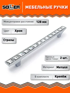 Комплект ручек мебельных 603-128 хром (со стразами) (6шт)