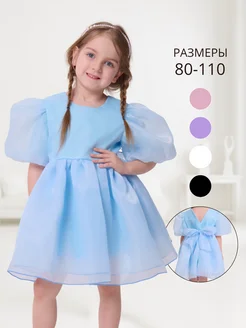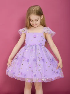 Платье сиреневое с пышной юбкой и бантом для праздника