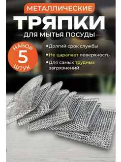 Салфетки металлическая для мытья посуды 5шт