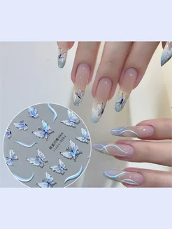 Наклейки для ногтей бабочки голубые яркие