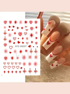 Наклейки для ногтей сердечки и бантики градиент