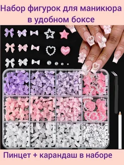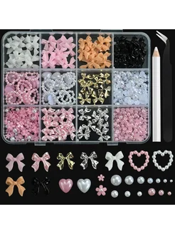 Фигурки для ногтей бантики, сердечки и цветочки в боксе