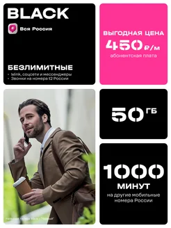 Сим-карта Тариф Black Вся Россия. Баланс 450 р