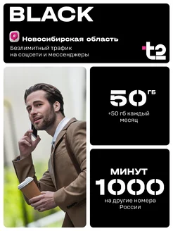 SIM-карта "Black", Новосибирская область. Баланс 1050р