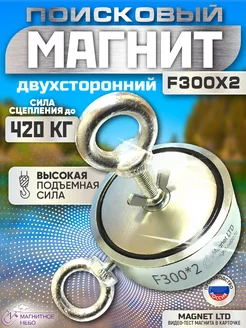 Поисковый магнит двухсторонний F300х2, сила сц. 420 кг