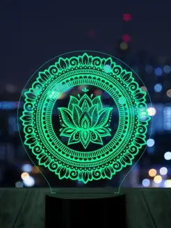 Ночник 3D Черный Пластик - Цветк лотоса Природа