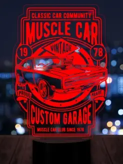 Ночник 3D Черный Пластик - Мускул Кар Рок Машины