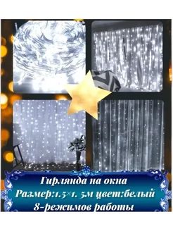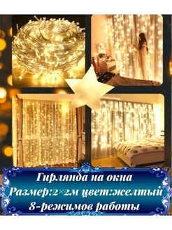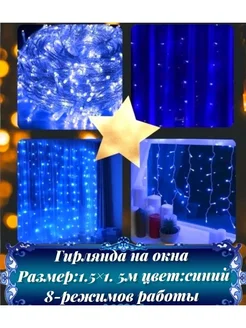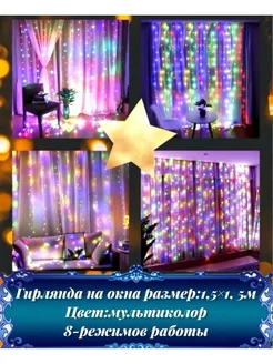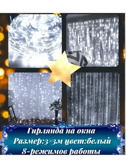 Гирлянда штора звезды занавес новогодняя на окно