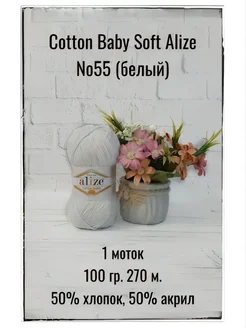 Пряжа для вязания Cotton Baby Soft 55 белый 1 моток