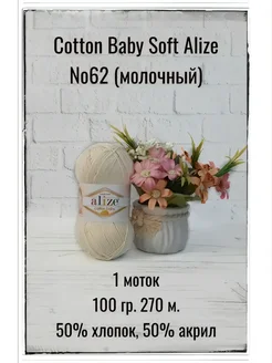 Пряжа для вязания Cotton Baby Soft 62 молочный 1 моток