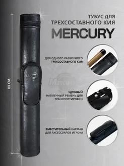 Тубус для кия 3-х составного Меркури, черный с карманом