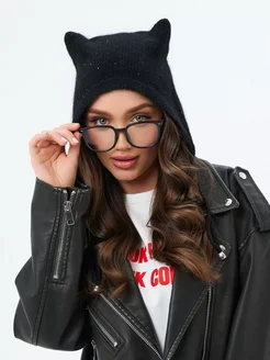 Чепчик шапка женская из ангоры вязаный с пайетками