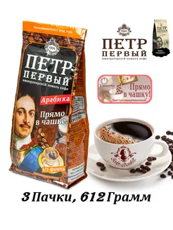 Кофе ПЕТР ПЕРВЫЙ молотый (прямо в чашку), 3 пачки 612 гр