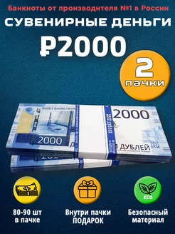 Сувенирные деньги 2000 рублей, 2 пачки, Банк приколов