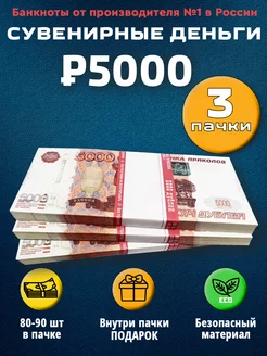 Билет Банка Приколов 5000 руб. сувенирная купюра, 3 пачки